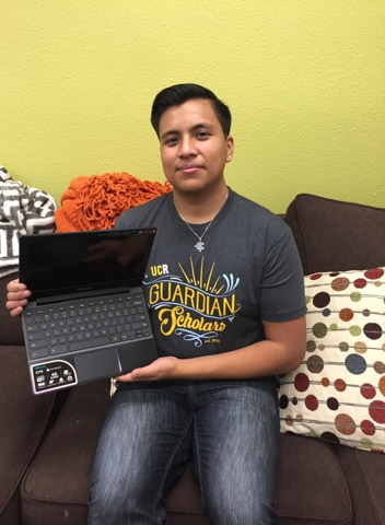 Orlando receives the gift from UC Riverside Guardian Scholars - Riverside, CA!