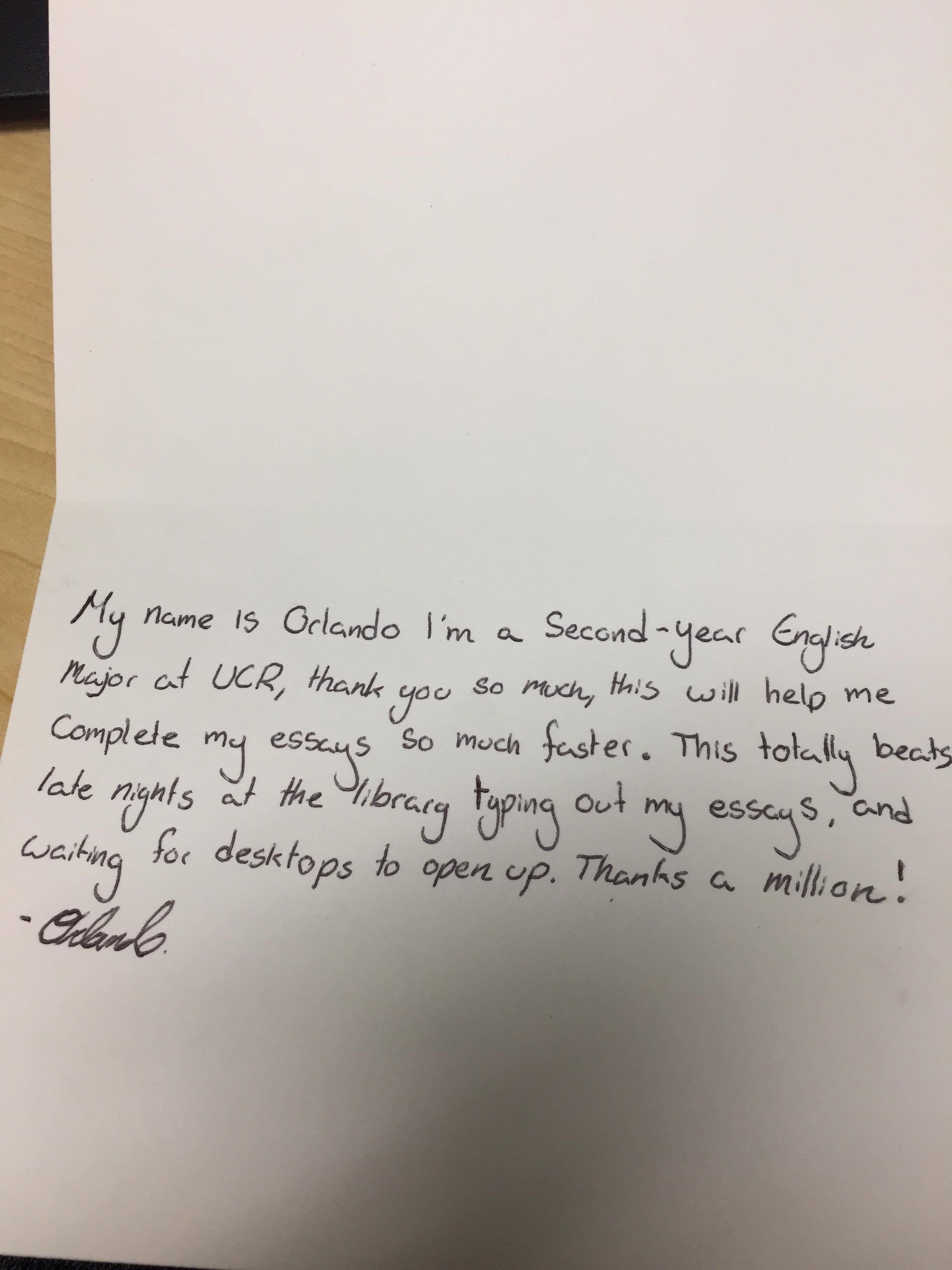"Orlando says thank you very much for his computer."