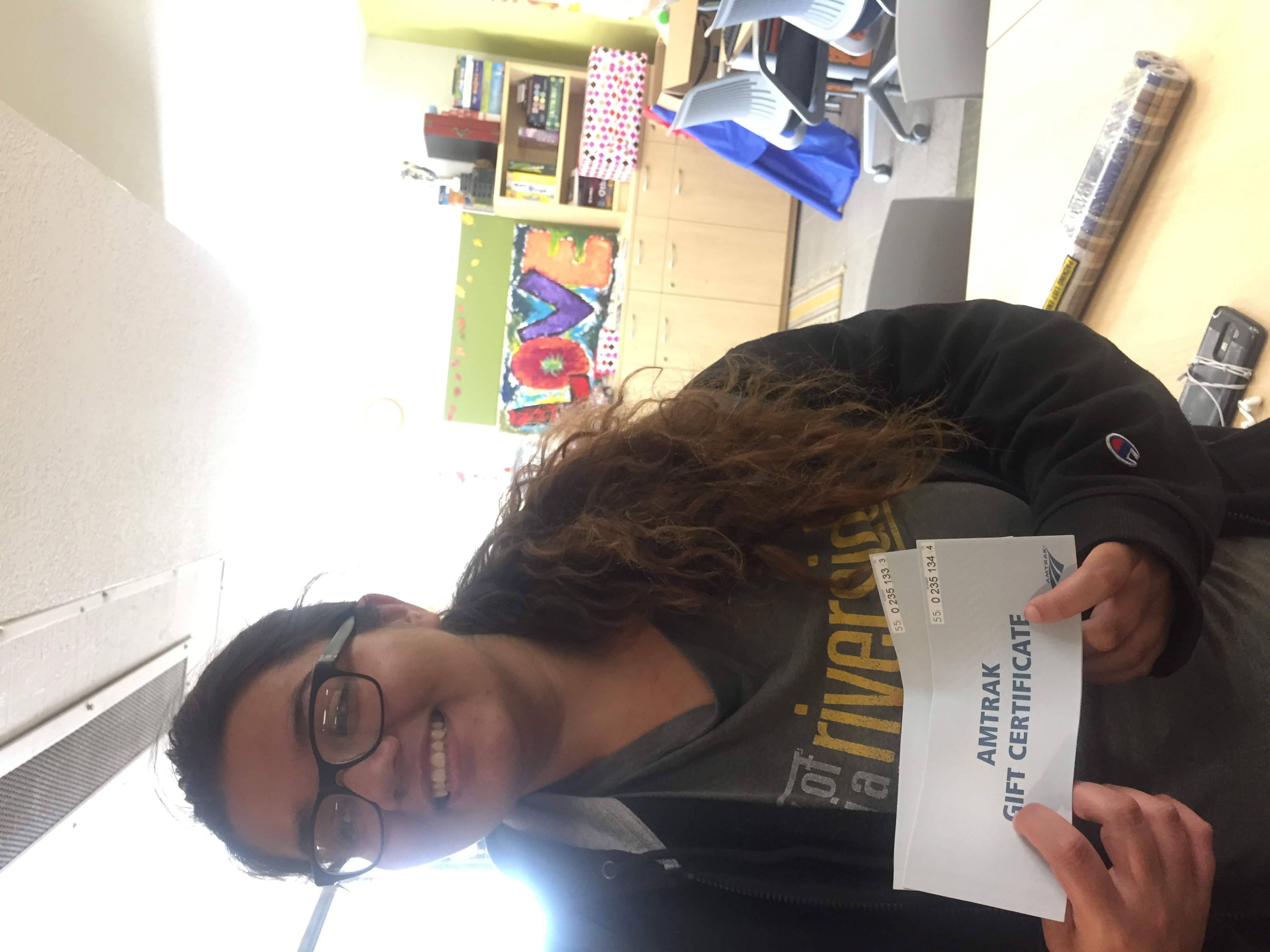 "Elisia says thank you very much for the Amtrak ticket. :)"